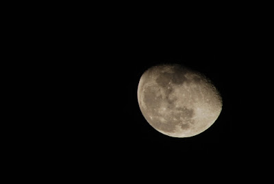 I think the title just about says it all here. Its a shot of the moon. What makes this shoot worth sharing? I took it. Standing on my back deck using a new DSLR camera I just got. I tried to take the picture a bunch of different ways without any real luck, so then I went back inside and looked up how to take a picture of the moon. And of course, found plenty of help, probably more than I understood.