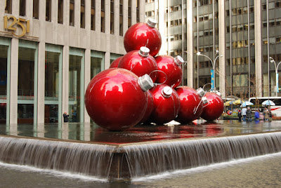 Here is the first of many New York pictures I'll be sharing. This is of some gigantic red ornaments near Rockefeller Plaza. I like the waterfall display that they sit on top of. I think thats about it...Enjoy!