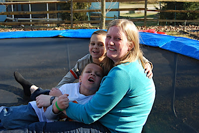 Seeing that Jenn and I don't have kids ourselves, Jenn has always adored our nephews. This is a shot of the three of them sitting on the trampoline. You'll notice that Brandon decided to smile real special like for the camera. Enjoy!