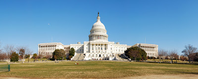 Today I have another panoramic to share. This is actually number 2 of 3, but I'm not to sure I'll ever post the third one here. This is a series of shots stitched together to make the panorama. It was taken around the center of the ground in front of the capitol, hence all of the grass in the foreground of the shot.