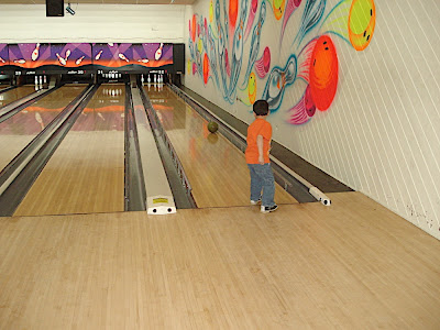 So today is another pictures of one of our nephews. This is Damien bowling. I would have thought that little children, especially ones that are related (i.e. him and his brother) would be a little nicer to one another. But they aren't. Damien won the first game and Holly won the second. Damien did quite a bit of gloating at his brother (which to me was funny, even if it was mean) because I know Brandon would have done the exact same thing. Now with that backstory told, this picture. Its Damien bowling. Enjoy!