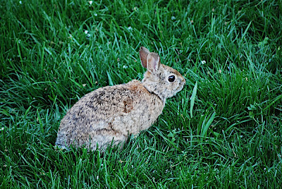 Last week Jenn and I went outside to cook (this is the same outside evening as the cloudy moon), and there were two rabbits in the back yard chowing down on the grass. It was pretty cool to see them, as well as take some pictures of them. With the trusty super zoom (200mm) lens on the Nikon I was able to get close up pictures of the rabbits without disturbing them. I think they hung out for about 10 minutes or so before we had to go down and turn on the grill, thus running them off. As for the picture...Enjoy!