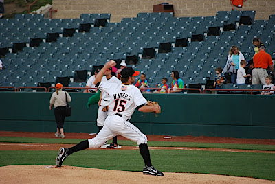 We had really good seats, right next to the visitors dugout, second row back, directly behind third base. Which game me the awesome opportunity to try out the 200mm zoom on the new camera. This is one of the shots I got of the starting pitcher from that nights game. By the way, Baysox won! Enjoy!