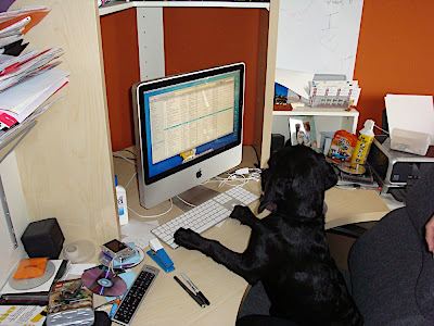 So....in a rather shameless setting I decided to mess with the dog today (since I was home early) and this shot turned up. Apparently the dog is just like Jenn and I and he's nuts for the computer. Who knows what he was getting ready to lookup, one can only wonder, but I have my suspicions. Enjoy!