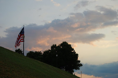 So when we went to shoot photos down at Federal Hill, we almost didn't go because it looked like it was going to rain big time. However it never did, and actually the clouds that were out during the sunset, made for some pretty cool and interesting different shots. Cause the clouds reflect the light in some really neat ways sometimes. This is one of those shots. There isn't a whole lot going on, but you do get to see the clouds and sunset I speak of as well as get an idea of the hill and the massive flag they've got sitting up there. Enjoy!