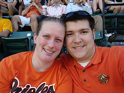 Jenn and I at the O's game this past Friday. It was a great game, with awesome weather (warm, but not to warm, with a slight breeze). The O's went down 6-1 in the 3rd only to come back and rally to tie it up in the bottom of the 6th and then go on to take the lead and win 9-6 over the Pirates. It was a great game, and a packed house. I can't remember the last time I saw Camden Yards so full. Enjoy!