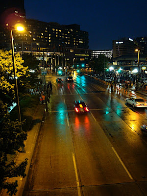Last week for the fourth of July Jenn and I went downtown for the Orioles game and then hung around afterwards to go down to the harbor for the fireworks. While we were waiting around for the fireworks to start, Jay and I were looking around for some good photo ops. One of the photos I "saw" and wanted to take was this one. We were on one of the harborplace walkways overtop of Pratt street. Hence the title and the image. I really like the lighting here and the blur motion of the few cars in the image. Enjoy!